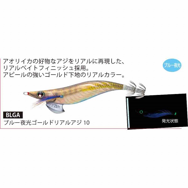 サイズ:3.0号 重量:14.5g 沈下速度:3.7秒/m アオリイカの好物なアジをリアルに再現したリアルベイトフィニッシュ採用。アピールの強いゴールド下地のリアルカラー。 トリックフック ラウンド