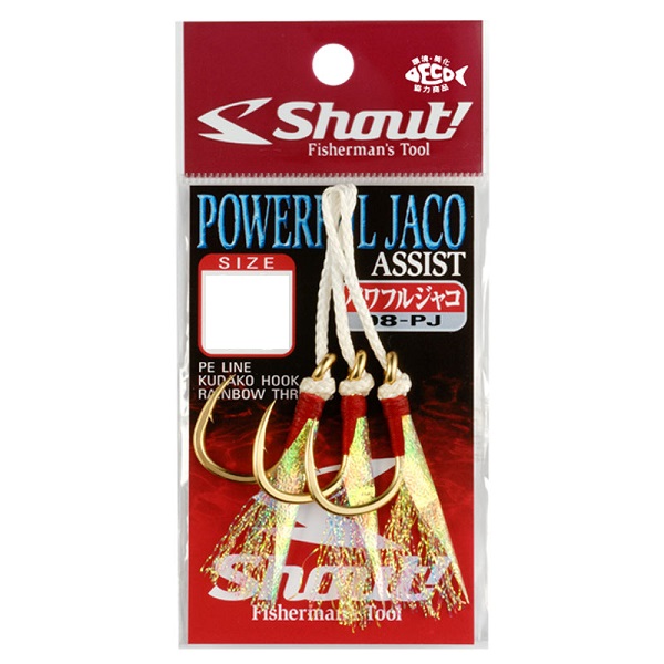 クダコフック、PEライン、エンボスシート刺さり抜群の近海用アシスト「JACOHOOK」のパワータイプ。根に入られやすいカンパチや、ヒラマサを強引に止めたい時にお使いください。もちろんターゲットに対するアピール力は「JACOHOOK」で証明済み。モンスター対応の「KUDAKOHOOK」仕様です。