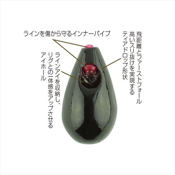 テキサスリグとシンカー直付けリグ、2つの長所を併せ持つビフテキシンカー。リングロッカー、ムーブストッパーとコンビで使えばビフテキの特長である飛距離、ファストフォール、スリ抜け、ハイアピールアクション、高いフッキングを実現するハイパフォーマンスシンカー。