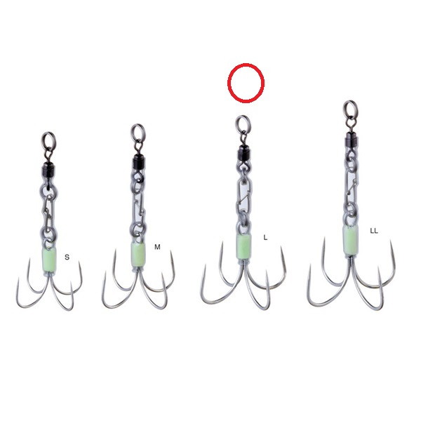 4本鈎の「クアッドフック」を使ったタチウオ専用設計アシスト。夜光バイトマーカーバージョン。