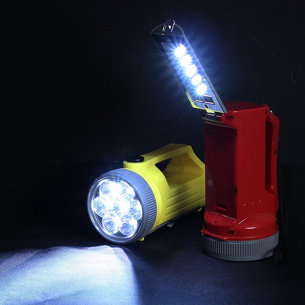 使用光源:5+7LED 明るさ:120lm+35lm 連続使用時間:24時間 使用電池:単3電池×3本 サイズ:W70×D62×H122o 自重:80g(電池付) 材質:ABS