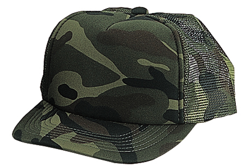 迷彩柄のアメリカンメッシュキャップ。後部4枚はメッシュなので通気性抜群。※掲載している商品の画像は代表画像を表示しています。また実物と色が違って見える場合があります。あらかじめご了承下さい。