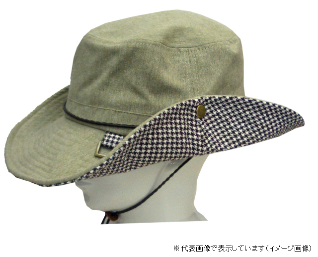ツバの縁にワイヤーを入れていますので形をつけてかぶれます。ツバを固定出来るドットボタン付き。風でも飛ばされないようあご紐付き。