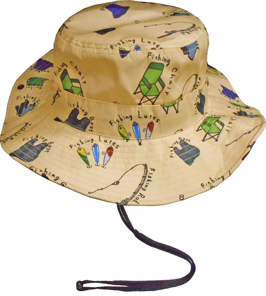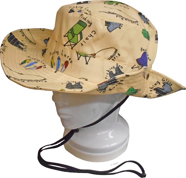 釣り道具のイラストを帽子全体にプリントした可愛いギョギョハット