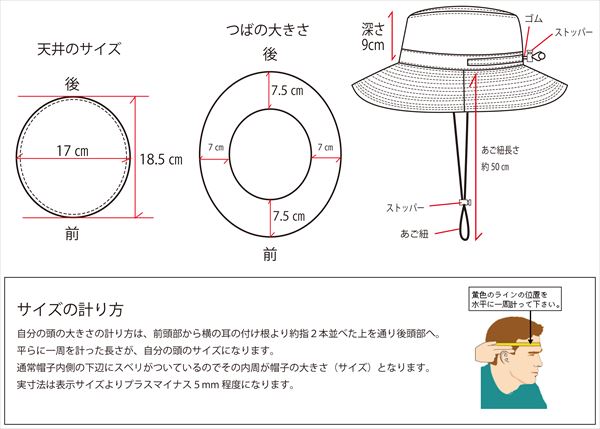 素材 ポリエステル 撥水加工を施しているので水しぶきや雨を弾きます。 サイズ調節機能付き つばの縁にワイヤー入りでお好みの角度に調整可能。 ホック付きでつばを固定できます。 あご紐付き つばの長さ=約7.5cm ※実物と色が違って見える場合があります。あらかじめご了承下さい。