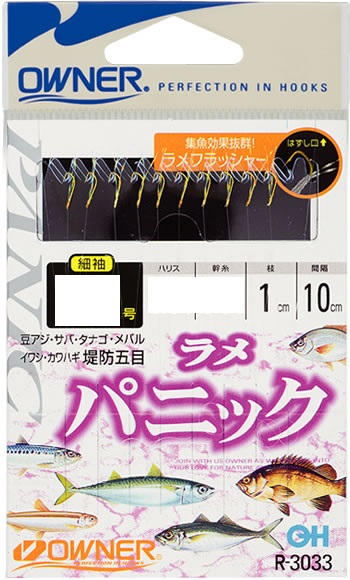 品名:ラメパニック,品番:33033 ( R3033 ),形態:仕掛,カテゴリー:波止サビキ | 波止・堤防 | ワカサギ,魚種:パニック(ワカサギなど) | アジ サバ(サビキ) | 海タナゴ,全長:1.2m ,使用鈎: 金細袖,幹糸号数:0.3,ハリス号数:0.3,備考:10本鈎 ※掲載している商品の画像は代表画像を表示している場合があります。また実際と色が違って見える場合があります。あらかじめご了承ください。