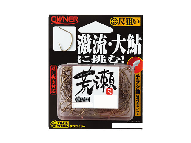 激流の大鮎に挑む!大鮎との戦いにひるまず対峙できる鈎、それが「荒瀬(あらせ)」。返し抜きや激流の中でも掛かり鮎を逃さない。保持力に定評のある長良型をベースに大鮎狙いに特化した。テーパー、鈎先長、鈎先向きをセッティング。鮎鈎としてはじめて「鋭く、強い」TAFF WIREを採用。大鮎との戦いに万全の選択です。※掲載している商品の画像は代表画像を表示しています。また実物と色が違って見える場合があります。あらかじめご了承下さい。