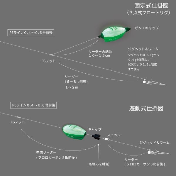 ZEXUSのLED・リチャージ技術と、FUJI-TOKIのフロート技術を結集し、完全防水・ワイヤレス充電の「BrightOn-ブライトン」が生まれました。その給電方法はスマホ同様のワイヤレス(非接触充電)専用スタンドにセットするだけのスマートデザインです。もちろん実釣性能にもこだわりを満載。面発光で抜群の視認性を確保するLEDには、視認性重視の緑と、魚に警戒心を与えにくい赤の2色展開。本体下部はフロートの回転を防ぐ船底形状。また、付属のピン・キャップを使用することで、固定式(3点式)/遊動式の両方が使用可能になる2way仕様。潮流の変化や、フロートの位置が一目でわかる、ワイヤレス充電式フロート、アングラーの声から生まれたナイトゲームの新スタイル是非お試しください。