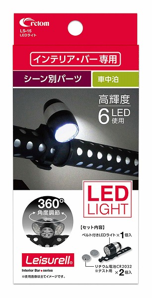 ソフトベルトで取り付けできる6LED使用の小型ライトです。