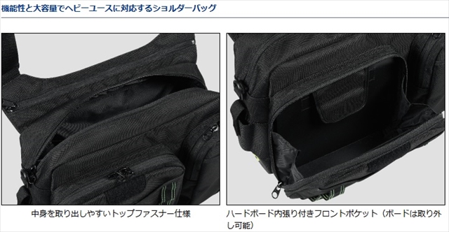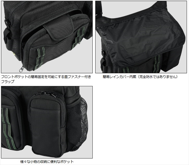 機能性と大容量でヘビーユースに対応するショルダーバッグ/中身を取り出しやすいトップファスナー仕様・ハードボード内張り付きフロントポケット(ボードは取り外し可能)・フロントポケットの簡易固定を可能にする面ファスナー付きフラップ・簡易レインカバー内蔵(完全防水ではありません)・様ーな小物の収納に便利なポケット■耐摩耗性、引裂き強さに定評のある1680Dナイロン素材の本格派。■体にフィットしやすい背面取り付けショルダーベルト。■中型のボックス類を効率的に収納可能(26×19cm程度を約2〜3個)。■メッシュポケット・プライヤーホルダー付き。■ショルダーベルトにDリングを装備。■背面に蒸れを抑える厚手メッシュパッド付き。■素材:ナイロン
