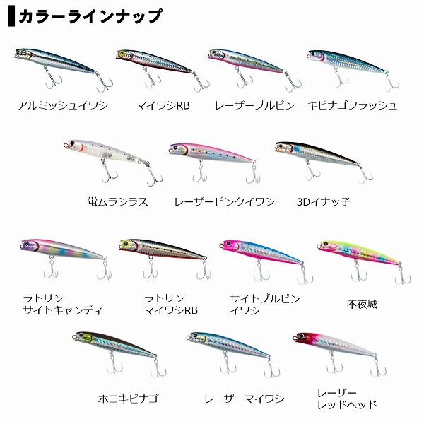 「これはエサだ」と称えられる元祖ウォータースルーギル搭載の爆釣ペンシルリアルなベイトフィッシュライクな外観、秀逸なキャスタビリティ、多彩なアクション。そして何よりもその長年の実績から「これはエサだ」とまで称えられる珠玉のペンシルベイト「T.D.ソルトペンシル」の基本性能、リアルなシルエットはほぼそのままに継承。リアルスリムボディによる高いフッキング性能、弱ったベイトフィッシュを演出する独特の浮き姿勢から生まれる軽快なドッグウォークアクション、そしておちょぼ口と元祖ウォータースルーギル構造による甘いスプラッシュ&ポップサウンドはあらゆるフィッシュイーターを魅了する。強化ボディの「HD(HEAVY DUTY)」を含めた多彩なサイズ展開により、シーバスはもちろんメッキやカマス、クロダイ等のライトゲームからシイラや青物まで対応。※掲載している商品の画像は代表画像を表示しています。また実物と色が違って見える場合があります。あらかじめご了承下さい。