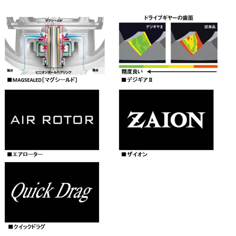 ※2月上旬予約開始予定 ●クイックドラグで楽しむ。軽量コンパクトで操作性を追求したサーフリールの決定版。25mmストロークで軽量コンパクトを実現。更に糸落ち防止機構をリニューアル。アイテムに応じたギヤー比を採用。パワフルな巻取りでリーリングをサポートするパワーTノブを搭載。瞬時に緩める/締めるが切り替えられるクイックドラグにより、サーフや堤防、磯からの大物狙いにも対応する。※掲載している商品の画像は代表画像を表示しています。また実物と色が違って見える場合があります。あらかじめご了承下さい。