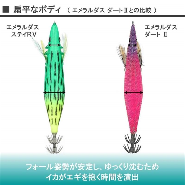 山田ヒロヒトが考える釣る為のエギを具現化。高重量と独特のボディー形状により想像を超えた飛距離を実現した。さらに、スタビライザーと低重心設計により揺ぎない安定感を実現。圧倒的な飛距離、安定したフォールがもたらす相乗効果で今まで捕れなかったイカを狙い打ち。ダート系エギとは一線を画す今までにない新しいエギの提案です。※掲載している商品の画像は代表画像を表示しています。また実物と色が違って見える場合があります。あらかじめご了承下さい。