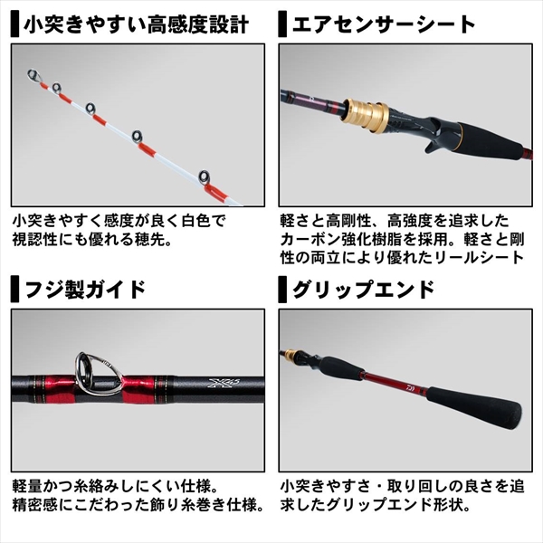 標準自重:92g 全長:1.6m 継数:2 仕舞寸法:84cm 先径/元径:0.8/10.9mm 錘負荷:25−60号 適合クランプサイズ:SSS カーボン含有率:88% 【20ndrd03】【20newdaiwa】【ダイワ キャスティング情報】