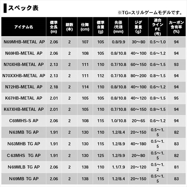 曲げて楽しむスリルゲームタイラバロッドが 紅牙MX APシリーズに追加発売! ■市場評価の高いスリルゲームモデル。これまでバットジョイントでしか実現できなかったTGをAPモデルとして実現。価格もMXクラスということもあり、ステップアップの1本として、またTGを使ってみたいアングラーにもオススメ。※掲載している商品の画像は代表画像を表示しています。また実物と色が違って見える場合があります。あらかじめご了承下さい。