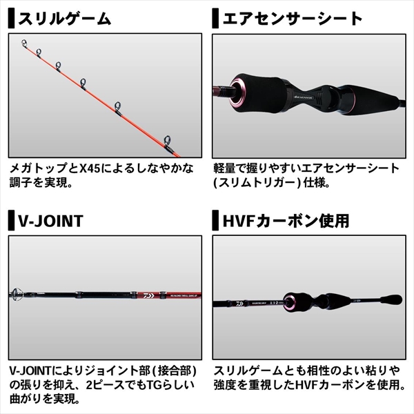 標準全長:2.06m 継数:2 仕舞寸法:138cm 標準自重:115g 先径/元径:1.2/8.4mm ルアー重量:20−150g 適合ラインPE:0.5−1.5号 カーボン含有率:83% 【20ndrd02】【20newdaiwa】【ダイワ キャスティング情報】
