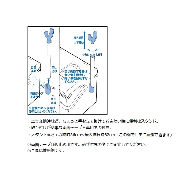 クーラー本体に取り付けて便利にカスタマイズできる付属パーツ、CP(クーラーパートナー)シリーズ■CPスタンド:エサ交換時などに竿をちょっと立てかけておける便利なスタンド