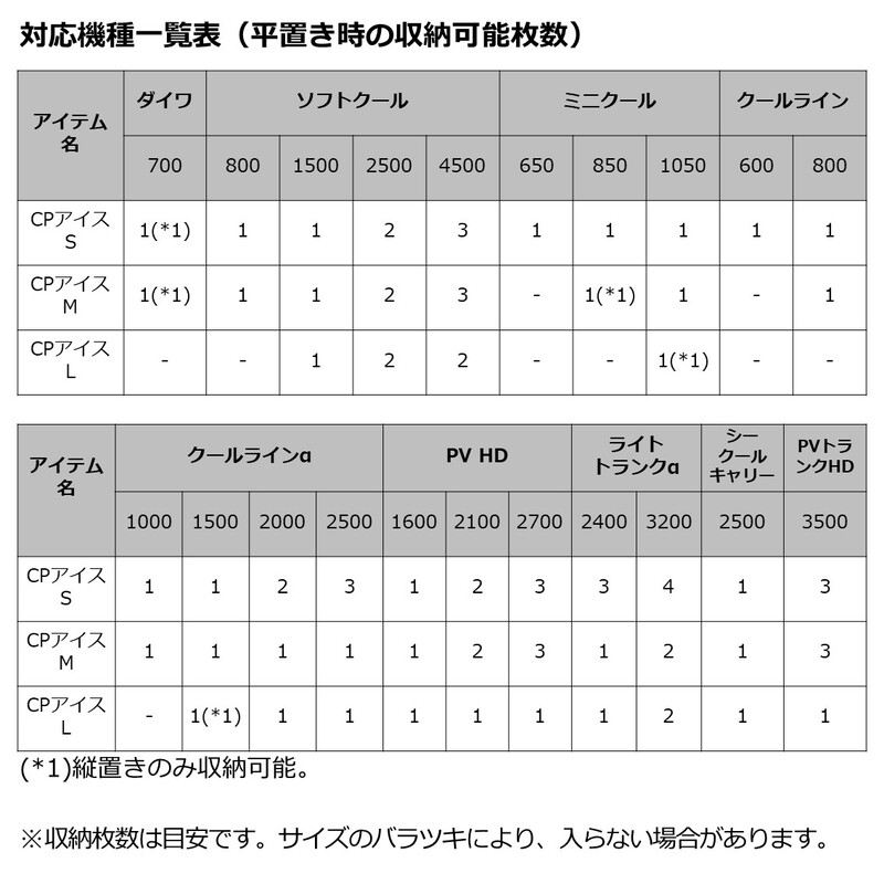 クーラー本体に取り付けて便利にカスタマイズできる付属パーツ、CP(クーラーパートナー)シリーズ ■マイナス16℃グレードを使用した保冷時間長持ちタイプ 画像通常の保冷材(0℃タイプ)と比較するとCPアイスはマイナス16℃グレードを使用しているため、氷が溶けにくく保冷時間がアップ。CPクールシャッターと一緒に使用することにより、更に保冷力がアップします。■低粘度保冷剤で完全凍結の判断が容易 保冷剤は完全凍結状態にない場合、100%の性能が発揮できません。CPアイスは低粘度タイプですので、容器を通しても保冷剤