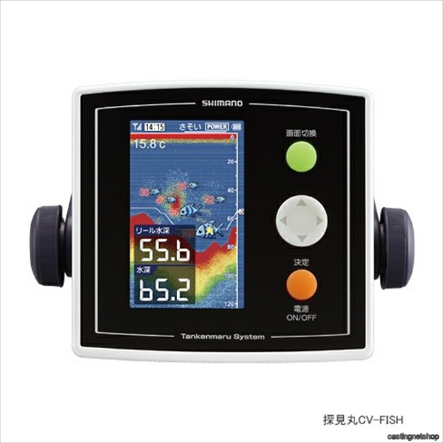 ※探見丸CV-FISHは探見丸親機が搭載されている船でご使用ください。 親機が搭載されていない船ではご使用いただけません。アキュフィッシュで、魚群アラームで…ビッグチャンスを感知する。電動リールとのアクセスで得られる情報がさらに拡大。魚群探知機で得られる情報に加え、仕掛けが指示ダナに到達した時点からの経過時間、リールカウンターでの水深を含む「5つの基本情報」を表示、釣りながらにして水中の情報を知ることができる[探見丸CV-FISH]。おおよその魚のサイズがすぐに判別できる[アキュフィッシュ]や[高輝度タイプ液晶]、魚の反応、電動リールの負荷状況を音で知らせてくれる[アラーム機能]など、多彩な機能にも関わらず操作は簡単。リールとの接続で仕掛けの落下速度、リールの巻き上げ速度の表示(手巻き時も表示)も可能になり、低速巻き上げ時の誘いに活用できます。得られた情報を常時確認しやすい船縁への設置型で、探見丸システムの柱となる存在。水深250mまで対応し、多くのフィールドで活躍します。■シャワー洗浄OK■海水OK■乾電池式 ※単三電池8本使用。(またはライトケーブルでバッテリーとの接続も可能)■魚群アラーム■潮見表(タイドグラフ)■ヘルプ機能■電動リールナビ(電動リール対応機種:12プレイズ800 / 1000、12フォースマスター2000MK / 3000MK / 9000、12プレミオ3000、13フォースマスター400、13ビーストマスター3000、2013年以降の新製品。)■アキュフィッシュ対応  ※掲載している商品の画像は代表画像を表示しています。また実物と色が違って見える場合があります。あらかじめご了承下さい。