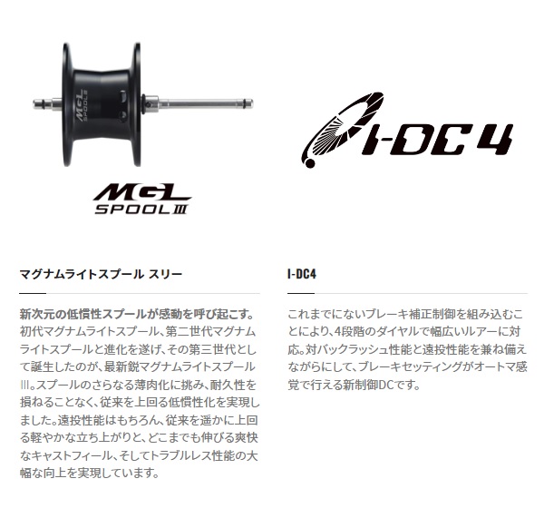 磨き上げ辿り着く、クラスを超えたDC。抜群の飛びと対バックラッシュ性能を獲得したSLX DCに、低慣性マグナムライトスプールVを当クラスで初めて搭載。さらに、電子制御ブレーキシステムI-DC4のファームウェアを一新。低慣性スプールの特性を引き出す緻密な制御により、軽量ルアーからビッグベイトにいたるまで、ベストなセッティングが決めやすくなりました。軽やかに立ち上がるスプール特性により、遠投から近距離の低弾道キャストまで、幅広いシーンをカバーします。また、超高強度真鍮性ドライブギア、カーボンクロスドラグワッシャ、HAGANEボディといった高耐久パーツも採用。誰もが扱いやすく、幅広いシチュエーションに可能なSLX DCは、最新鋭の機能を身近に体感できる、タフでオールラウンドなハイスペックなモデルです。
