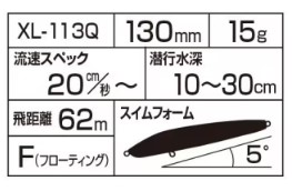 カラー:チャートイカG タイプ:フローティング 全長:130mm 重量:15g 飛距離:62m 潜行深度(参考値):0.1-0.3m スイムフォーム:5° 流速スペック:20cm/秒から フック:#5x2 ※実物と色が違って見える場合があります。あらかじめご了承下さい。