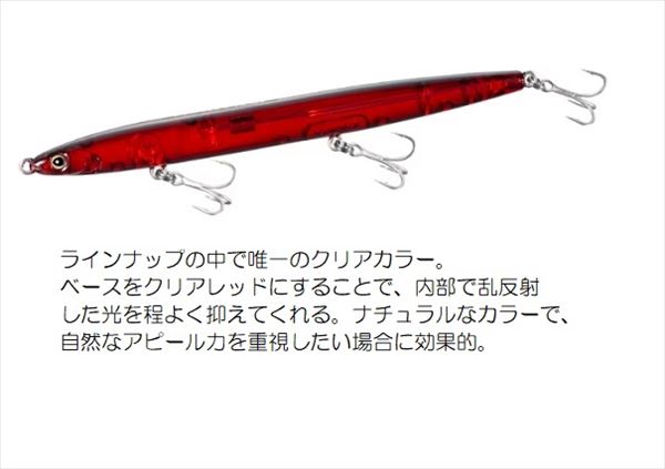カラー:クリアレッドバチ タイプ:フローティング 全長:120mm 重量:7.5g 飛距離:44m フック:#12x3