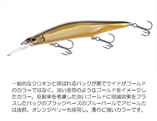 カラー:クロキンスパーク タイプ:サスペンド 全長:115mm 重量:15g フック:#6x3