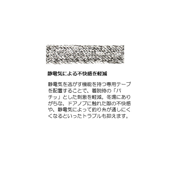 化繊インサレーションの防寒レインスーツ。化繊インサレーションを採用したこのジャケットは、ダウンに比べて濡れても嵩高が減りにくく、乾きが早い特性を持ちメンテナンス性が良いのが特徴です。胸の大容量のポケットは肩掛けタイプの自動膨脹ライフジャケット、ゲームベスト等の着用時にも邪魔にならずにアクセスできるデザイン。ファスナーには止水性を持たせる処理を施したものを配置して水の浸入を軽減しました。生地の表側はマットな糸を採用し、しっとりとした質感を実現しています。裾や袖の面ファスナーアジャスト、パンツの前開き、ウエスト調整、フードアジャストなど、機能性に優れた装備を各所に配置し耐久防水基準であるドライシールドもクリアしている非常にコストパフォーマンスに優れたモデルです。