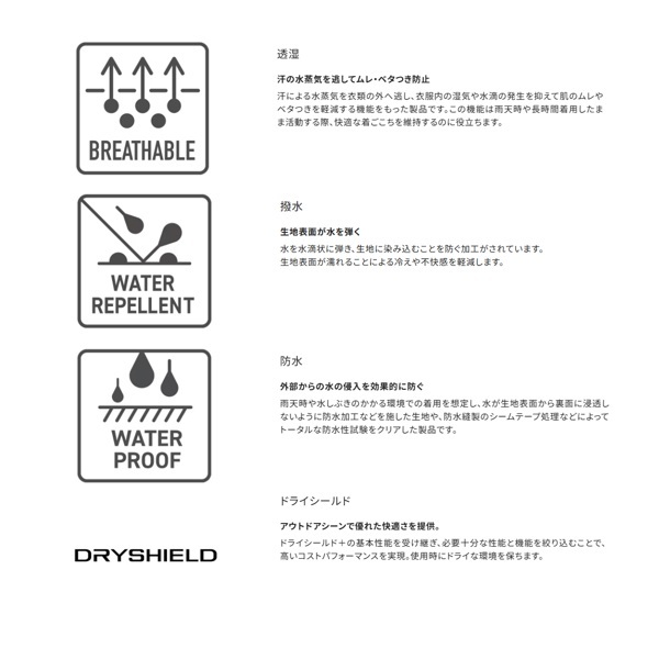 素材:ナイロン100%(ポリウレタン透湿防水加工) 、中綿:ポリエステル100%、裏:ナイロン100%、部分:ポリエステル100%/ナイロン100%