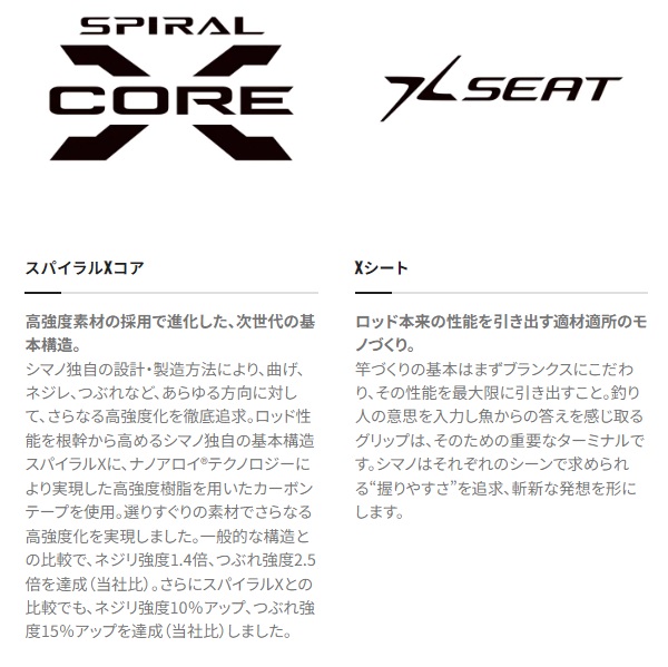 全長:2.00m 継数:2 仕舞寸法:103.6cm 自重:275g 先径:2.2mm 錘負荷:100〜250号 リールシート位置:390mm リールシートタイプ:DOWNLOCK カーボン含有率:84.2% ※RIGHT=右巻きの両軸・電動リールに適応します。