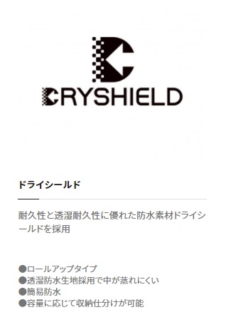 中が蒸れにくいドライシールド採用。ロールアップタイプ。透湿防水生地採用で中が蒸れにくい。簡易防水。容量に応じて収納仕分けが可能※掲載している商品の画像は代表画像を表示しています。また実物と色が違って見える場合があります。あらかじめご了承下さい。