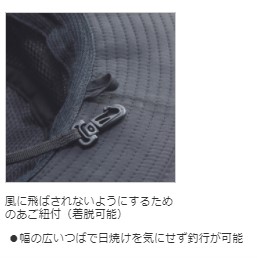 幅の広いつばで日焼けを気にせず釣行が可能。風に飛ばされないようにするためのあご紐付(着脱可能)※掲載している商品の画像は代表画像を表示しています。また実物と色が違って見える場合があります。あらかじめご了承下さい。