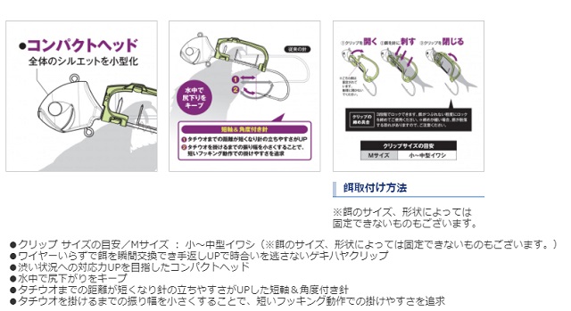 餌付けはワイヤーいらず、挟むだけ!時合いを逃さない!コンパクト短軸針バージョン。※掲載している商品の画像は代表画像を表示しています。また実物と色が違って見える場合があります。あらかじめご了承下さい。
