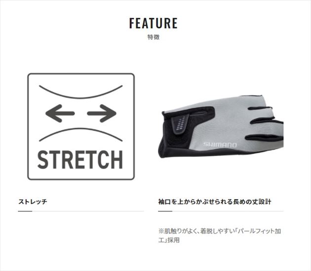 操作性と保温性を両立する3本指出しグローブ。秋から冬、春にかけて風が冷たく、水温の低い時期の釣りでは竿を扱う際に手をしっかりと保温することが大切。その一方で、グローブで手を覆ってしまうと、針や餌の交換などの細かな作業がしづらくなってしまう。こうした悩みを解決するのが指ぬきグローブだ。パールフィットグローブ3は、心地よい手触りで着脱しやすいパールフィット加工を施したグローブ。袖口を長めに取り、ウェアの袖の上からかぶせることで冷気や水の侵入を防止、さらに針交換などで使う頻度の多い親指から中指までの3本の指の先端に当たる箇所をカットとすることで、保温性と操作性の両立を目指している。