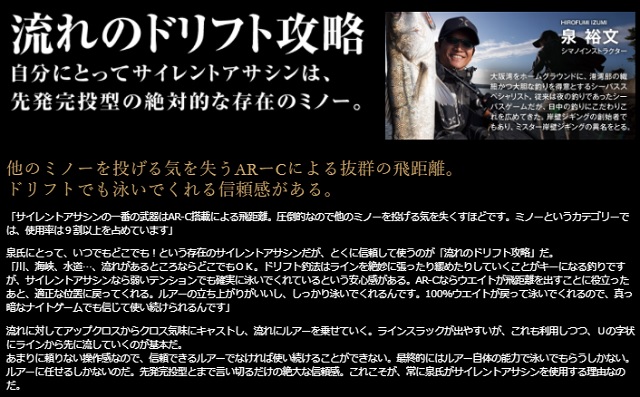 ミノーでは届かなかったエリアを直撃!従来ミノーの射程圏外で発生するシーバスのボイル、潮目、鳥山・・・・。たとえジグやバイブレーション、シンキングペンシルが届いてもレンジやアクション、トレースコースが合わずジレンマを抱くことは少なくない。ミノーで攻めたいロングレンジポイントを射程圏に捉えるため、AR-Cシステム搭載により平均飛距離71.3mをマーク。※掲載している商品の画像は代表画像を表示しています。また実物と色が違って見える場合があります。あらかじめご了承下さい。