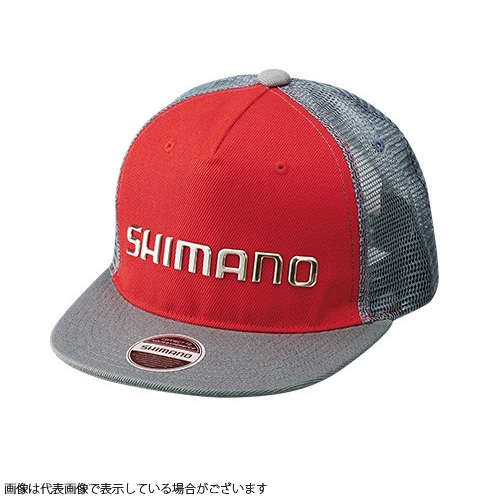 シマノ CA-092S フラットブリムメッシュキャップ レッド/グレー フリーサイズ