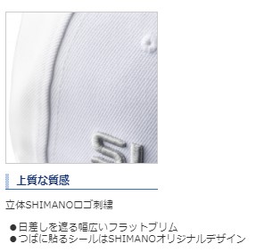 上質な質感。立体SHIMANOロゴ刺繍●日差しを遮る幅広いフラットブリム●つばに貼るシールはSHIMANOオリジナルデザイン※掲載している商品の画像は代表画像を表示しています。また実物と色が違って見える場合があります。あらかじめご了承下さい。