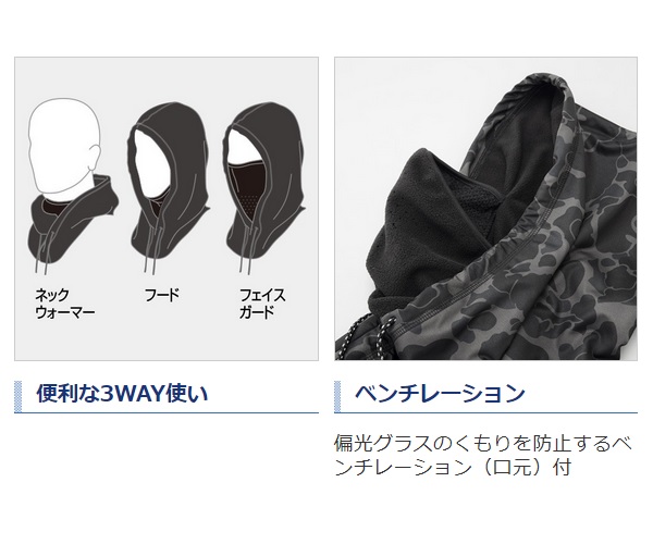 フード付きで頭から顔周りの冷えを防止フェイスガード ■内側の暖かいフリースで顔まわりを保温 ■鼻までかかるフェイスガード仕様 ※掲載している商品の画像は代表画像を表示しています。また実物と色が違って見える場合があります。あらかじめご了承下さい。