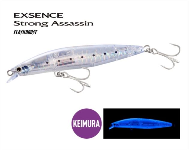 ランカーシーバス、ヒラスズキ、さらにショアから狙う青物まで安心して対応できる力強いストロングアサシン。ジェットブーストを搭載しているので、サーフの鳥山、磯での遠い潮目など、届きにくいポイントも射程圏内に入る飛行性能は健在。アクションはワイドなウォブンロールで、ブリブリとしっかり水を押してアピール。リトリーブ時の水噛みも良く、流れの強弱や、潮の動きもしっかり手元に伝える設計です。さらに、フラッシュブーストを搭載し、流れや潮に乗せて漂わせるドリフトでも、ボディ内部で震えながらフラッシングで誘い続けます。