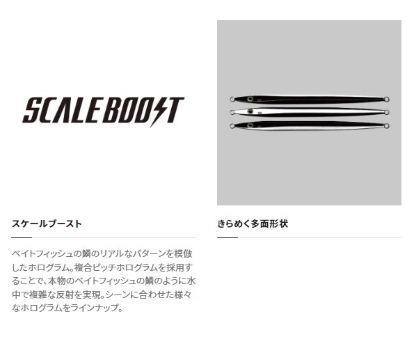 電動ジギングだから体感できる新次元!電動高速ジャークに対応できる専用設計。海中でジグの動きを観察すると、電動リールによるハイスピードジャークを行なった場合、通常のジギングタックルでは到底出せない速度でジグが動いています。だから、普段のアクションで喰わない魚が反応するのです。しかし、普通のジグではこのスピードに耐えられず、簡単に回転してしまい、狙った喰わせのアクションを出すことが難しい事が分かりました。そこでEJスピードは、電動リールのハイスピード(表示速度:Hi)リトリーブでのジャークでも回転せずに、安定して高速スライドを続けられる形状を目指して専用設計されています。ブリとヒラマサの狙い方・・・ブリを狙うアクションは、表示速度:10前後の中低速で、大きなロッド操作で長めのラインスラックを作ってジグのスライド幅を大きくします。また、ヒラマサを狙う時には、表示速度:20−Hiまでの高速域で適切な速度を選んでクイックにジャークする操作がおすすめです。