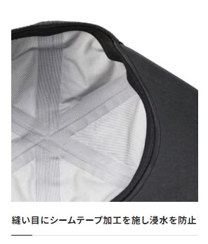 ベーシックデザインでレインキャップ。防水透湿生地採用で雨でも安心。ベーシックなシルエット、デザインで様々なシーンにマッチ。