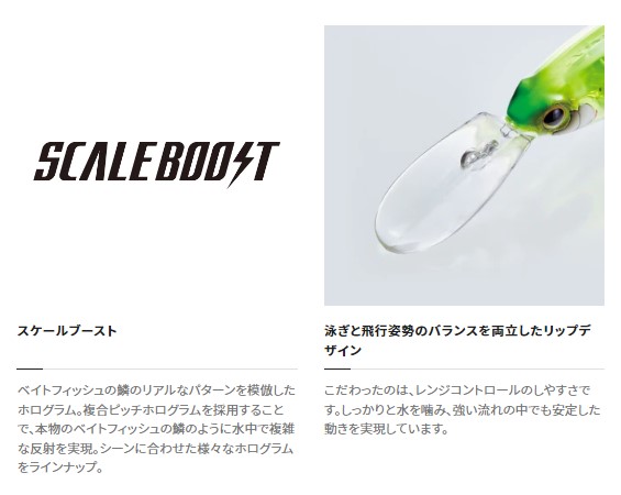 河川サクラマスのディープゾーンを攻める。本流のサクラマスを広範囲で狙う上で、欠かせないのは飛距離とアピールです。ロングビルミノーに「JET BOOST」と「FLASH BOOST」さらに「SCALE BOOST」を搭載し、激戦区のハイプレッシャー河川でも、まだ攻め切れていない遠距離の深場にアプローチし、効果的にアピールすることが可能です。