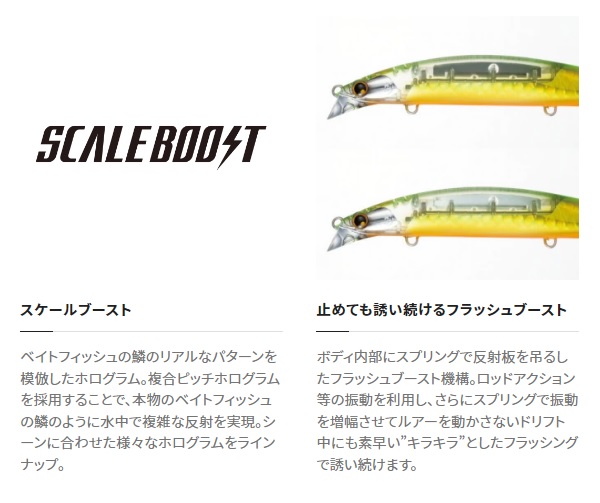 遠浅サーフのスペシャリスト!フラッシュブーストを搭載した新しいスピンブリーズ!大きな面のフラッシングでルアーの存在をしっかりアピールできる140mmボディ。内部には飛びと泳ぎのレスポンスを強化するジェットブーストを搭載しています。