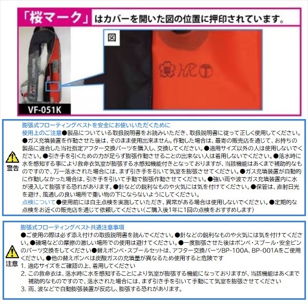 シマノ ライフジャケット VF-051K ラフトエアジャケット(膨脹式救命具)