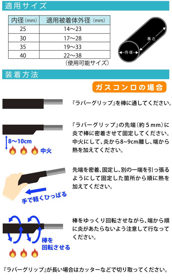 熱で収縮するラバーグリップ。スポーツ器具はもちろん、DIYでも大活躍!※掲載している商品の画像は代表画像を表示しています。また実物と色が違って見える場合があります。あらかじめご了承下さい。