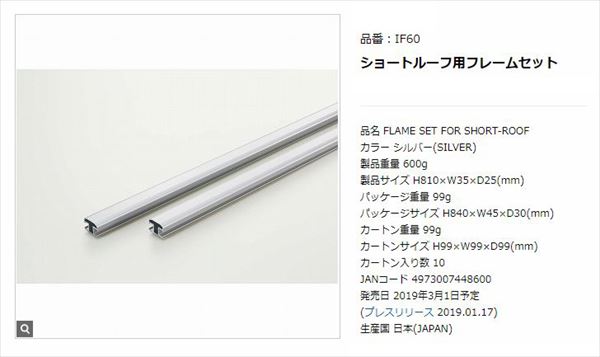プリウス、アクア等ルーフの短いクルマに、IF14またはIF16を取り付けるため、標準品に替えて使用する短いタテフレームの2本セット。アルミ部分800mm(キャップ込みで810mm)。
