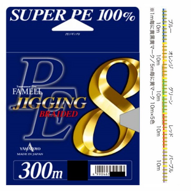 カラー:1m毎に黄黒黄マーク/5m毎に黄マーク 10m×5色(ブルー・オレンジ・グリーン・レッド・パープル) 素材:スーパーPE8本組 号数:3 LB(AVE):46