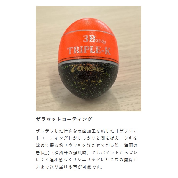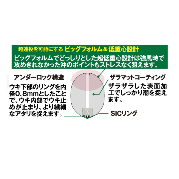 國見孝則監修モデルのふかせウキ。超遠投を可能にするビッグフォルムでどっしりとした超低重心設計は強風時で攻めきれなかった沖のポイントもストレスなく狙えます。カラーには全天候対応のオレンジ、曇天時や水中での視認性に優れるイエローをラインナップ。状況に応じて使い分けることが可能です。