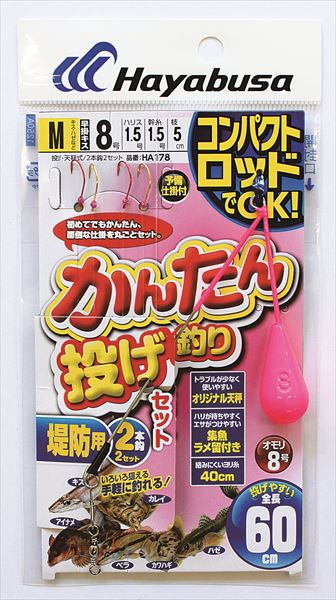 ハヤブサ HA178 コンパクトロッド かんたん投げ釣リセット 2本鈎 M【即日発送】