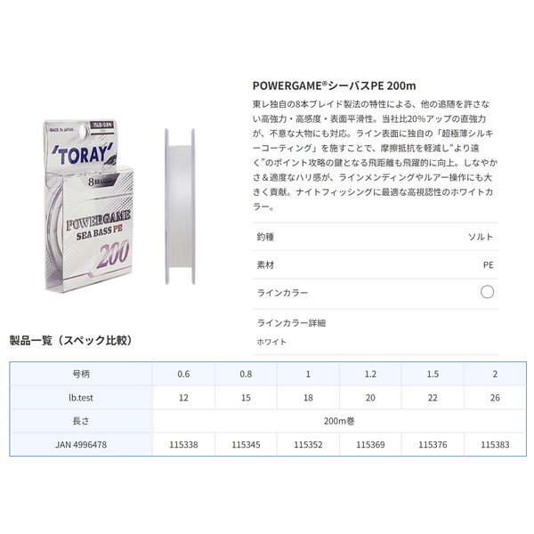 東レ PEライン シーバスPE パワーゲーム 200m 15lb【即日発送】